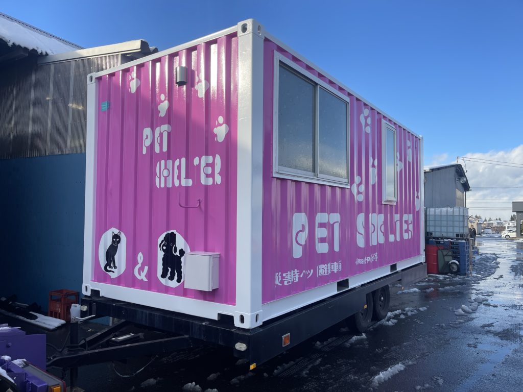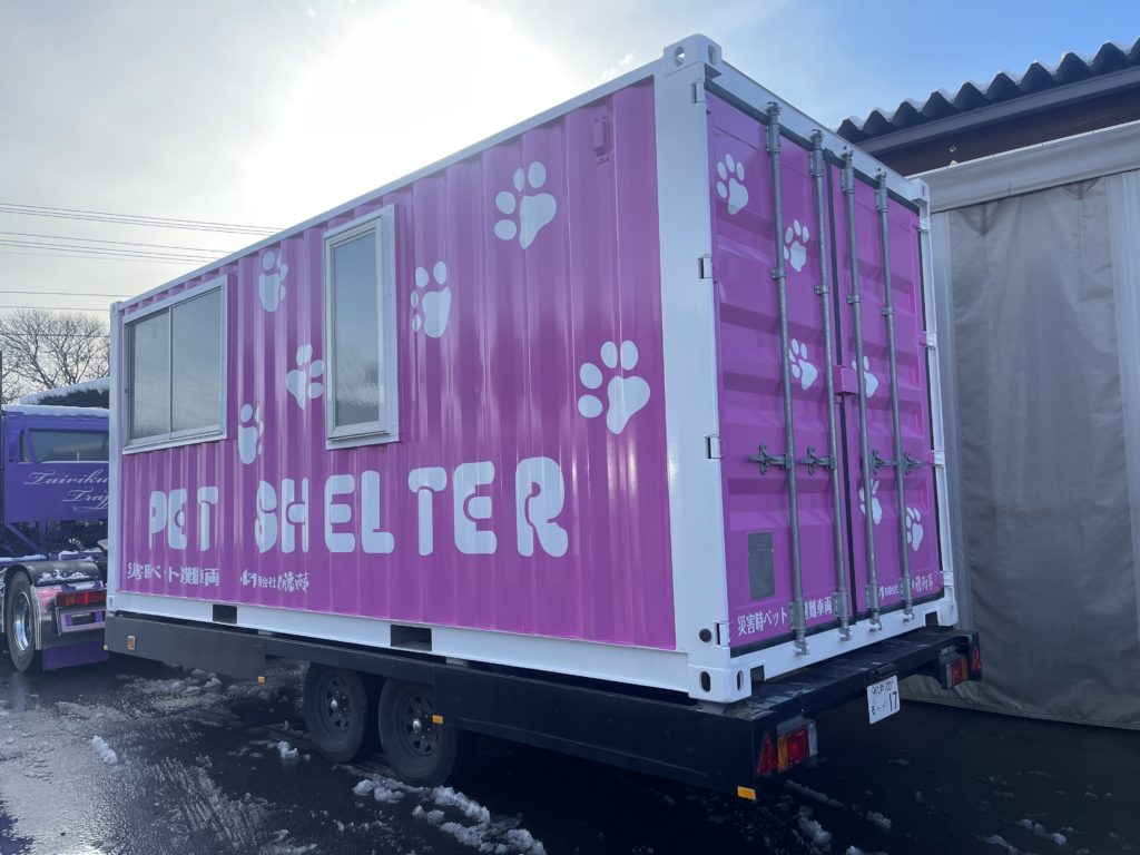 この車両は、災害が起きた際に、人と同じように行き場を失ってしまうペットたちのために、一時的に安心して過ごせる場所を確保することを目的としています。