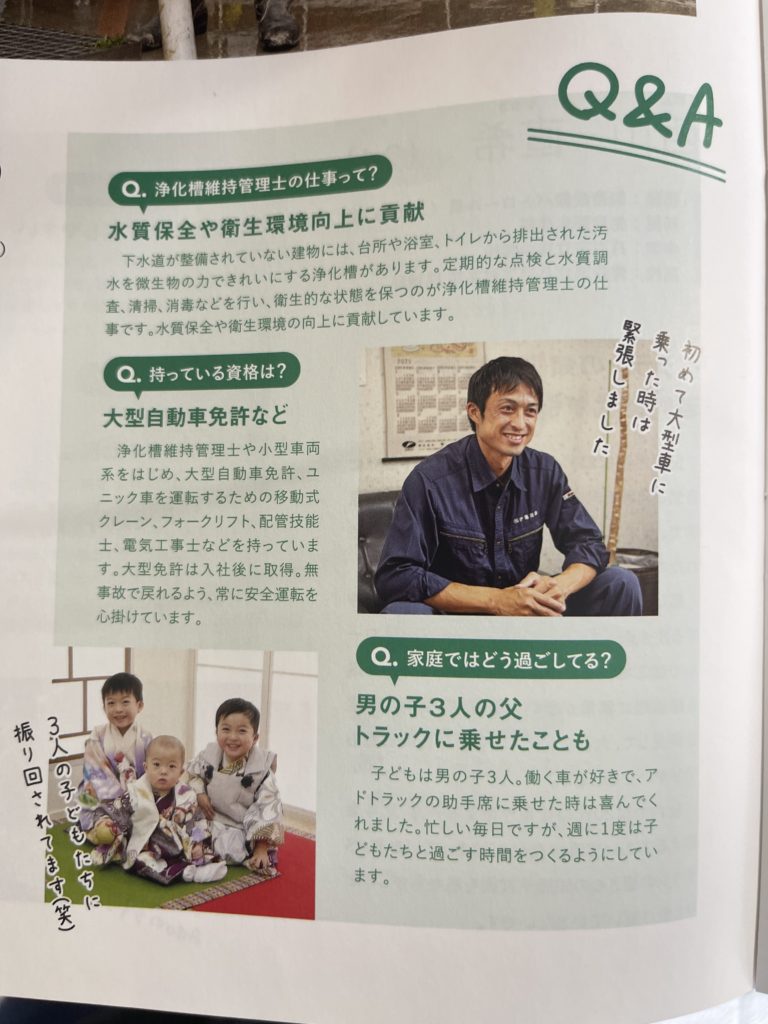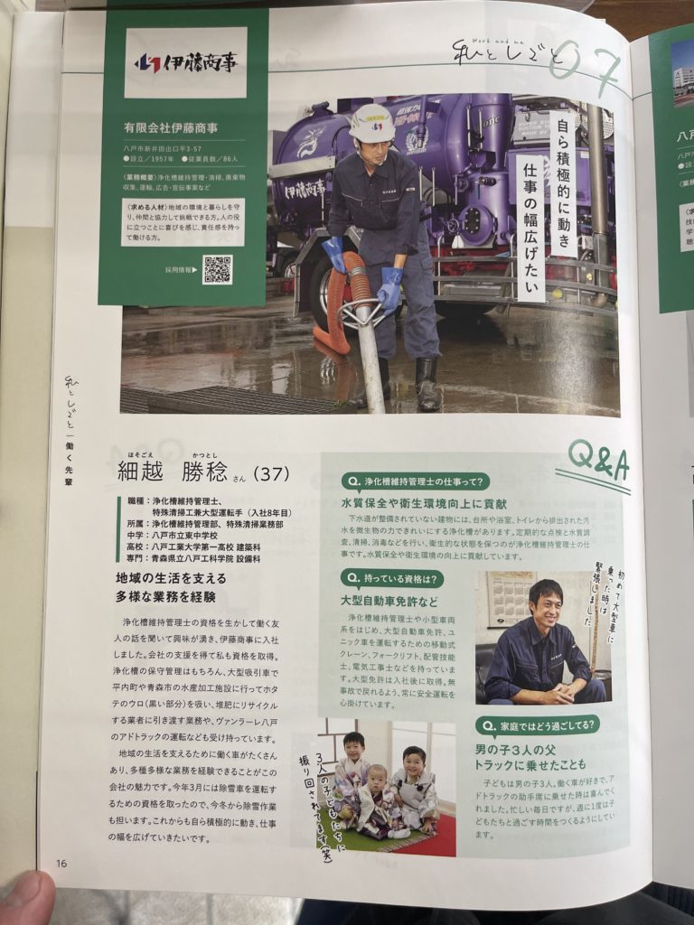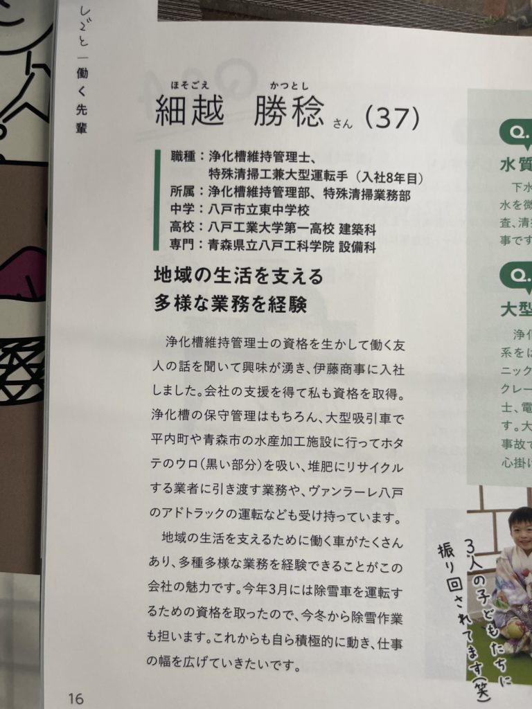 誌面に写っているのは、超強力吸引車を背に現場に立つ細越さん。